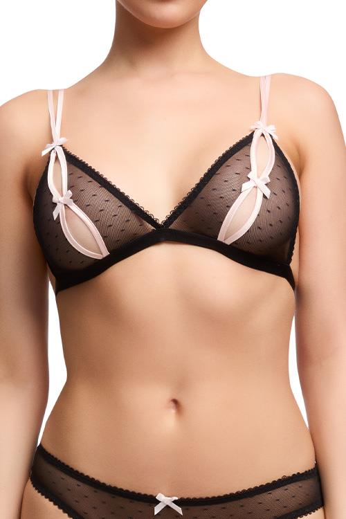Embracing the essence of playful mystique, the Coquine Bralette from Dita Von Teese captivates with its soft spot mesh adorned with alluring keyhole cut-outs.