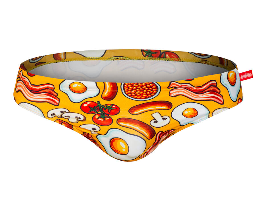 Featuring fun prints that hint at hotdogs and English breakfast vibes, this swimwear brings your foodie passions to life.