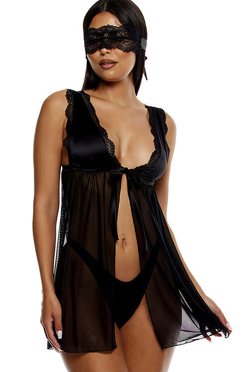 Add some chic mystique to your wardrobe with this front tie babydoll from Forplay!