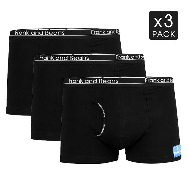 Sleek Versatility with Black Cotton Boxer Briefs 3-PackLooking to upgrade your mens essentials with a versatile set? This mens boxer briefs 3-pack from Frank and Beans® is your go-to choice. In a sleek black shade, these mens cotton underwear bring a mens trunk underwear sophistication that’s perfect for any occasion, ensuring you’re always ready to conquer the day.Cotton Comfort Meets Timeless DesignThese aren’t your average boxer briefs. Crafted with ultra-soft cotton, they feature a front exit pocket for convenience, a signature blue ColourTag® for a premium touch, and a seamless design for a polished look. The fit ensures a snug feel, making these guys boxer briefs a versatile addition to your collection. Want more styles? Check out our boxer briefs collection!Why You’ll Love This Black Cotton Boxer Briefs 3-PackStep into versatility with these male trunks underwear. The ultra-soft cotton fabric offers all-day comfort, while the breathable design keeps you fresh from dawn to dusk. Perfect as a timeless boxer briefs mens underwear choice, they provide a roomy fit and a no-ride-up design for effortless wear. Prefer a modal version? Explore our modal boxer briefs!Built by Frank and Beans® with a legacy of quality since 2009, these trunks are your go-to for sleek versatility. Grab your 3-pack and stay stylish every day!