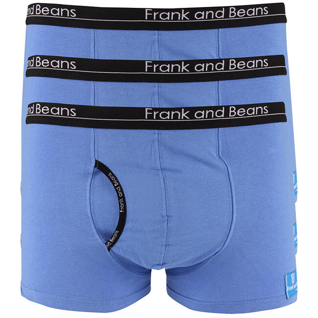 Ocean-Inspired Confidence with Blue Cotton Boxer Briefs 3-PackPicture yourself diving into the depths of confidence with this mens boxer briefs 3-pack in a mesmerizing blue—a hue that echoes the calm of the ocean! Crafted for the modern adventurer, these mens trunk underwear wonders from Frank and Beans® ripple with the softness of mens cotton underwear, featuring a front exit pocket, ultra-smooth fabric, and a signature blue ColourTag® that marks them as a premium choice. These boxer briefs mens underwear are the ultimate guys boxer briefs for a wave of style and comfort.Cotton Comfort Meets Serene StyleThese aren’t just any boxer briefs. Designed to flow with your every move, they’re your male trunks underwear essentials that keep you fresh and confident through every tide of the day. With a breathable design, a no-ride-up fit, and a tag-free experience, they’re built for all-day wear, whether you’re navigating the boardroom or the beach. The fit ensures a snug feel, making these mens boxer briefs a serene addition to your collection. Want more styles? Check out our boxer briefs collection!Why You’ll Love This Blue Cotton Boxer Briefs 3-PackStep into a sea of confidence with these mens trunk underwear. The ultra-soft cotton fabric offers unmatched comfort, while the breathable design keeps you fresh from dawn to dusk. Perfect as a serene boxer briefs mens underwear choice, they provide a roomy fit and a no-ride-up design for effortless wear. Prefer a modal version? Explore our modal boxer briefs!Built by Frank and Beans® with a legacy of quality since 2009, these trunks are your go-to for ocean-inspired confidence. Grab your 3-pack and ride the wave of style!