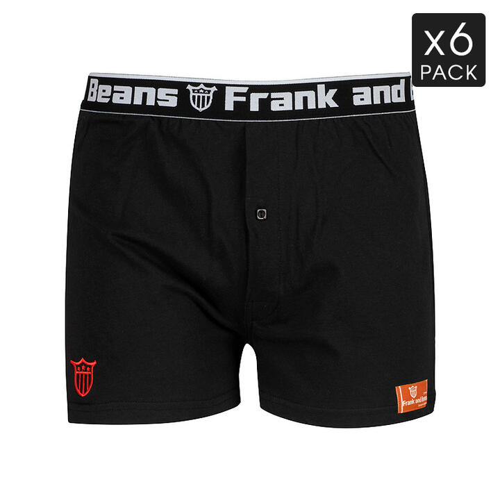 Everyday Comfort with This Cotton Boxer Shorts 6-PackLooking to refresh your mens essentials? This 6-pack of mens cotton boxer shorts from Frank and Beans® is your go-to choice. Featuring six pairs in classic black, these cotton boxer shorts bring a mens short boxers vibe that’s perfect for daily wear, whether you’re at work or relaxing at home.Cotton Comfort Meets Classic StyleThese aren’t just any boxer shorts. Crafted from premium cotton, they feature a covered elastic waistband and a single button front for a timeless look. The Traditional Fit ensures a comfy feel, while our signature ColourTag® adds a unique touch to these mens boxer shorts. Want more variety? Check out our mixed packs!Why You’ll Love This Cotton 6-PackSlip into these guys boxer shorts and feel the difference. The super soft cotton fabric provides all-day comfort, while the breathable design keeps you cool from morning to night. Perfect as a versatile mens underwear Australia set, they offer a roomy fit and a no-slip grip for everyday ease. Explore more classic styles in our boxer shorts collection!Built by Frank and Beans® with Aussie spirit since 2009, these mens cotton boxer shorts are your go-to for everyday comfort. Grab your 6-pack and stay comfy in style!