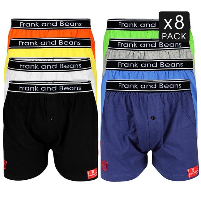 Level Up with the 8-Mix Colour Cotton Boxer ShortsReady to ditch the boring basics? This 8-pack of mens boxer shorts from Frank and Beans® is here to shake things up. With colours like Black, Grey, White, Purple, Green, Blue, Orange, and Yellow, these cotton boxer shorts are all about variety and comfort. Crafted from 100% cotton, they’re soft, breathable, and ready for anything.Retro Meets RelaxedThese boxer underwear gems come with a button-fly design that’s equal parts old-school cool and modern chill. The Traditional Fit keeps it laid-back, while the ColourTag® on the leg adds a pop of personality to these guys boxer shorts.Eight Reasons to Love This PackWhy stop at one when you can have eight? These mens boxers give you a shade for every mood—sleek Black for the win, zingy Yellow for the fun. Perfect as undies for men, they’ve got that no-slip, room-to-breathe vibe that makes mens underwear a daily win. Since 2009, Frank and Beans® has been crafting top-notch boxer shorts with Aussie spirit—grab yours and colour your world!