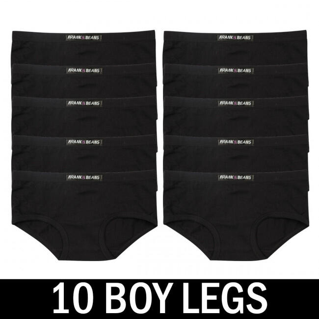 Frank and Beans – Women’s – 10 Boyleg Panties Cotton – Black – XXL