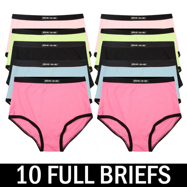 Frank and Beans – Women’s – 10 High Waisted Full Brief Panties – Multicolour – Large