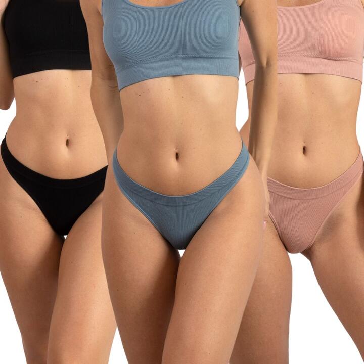 Our 3 pack Seamless thong crafted of ribbed jersey made from super soft and stretchy rib fabric for all-day comfort. Flattering high cut leg and elastic waist band without side seams.